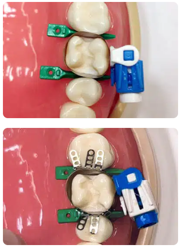 The detachable stainless-steel carrier makes placement intuitive, even in tight or difficult quadrants. Once the band is secure, the carrier can be removed to stay out of your way. This means better access, less interference, and fewer adjustments mid-procedure.