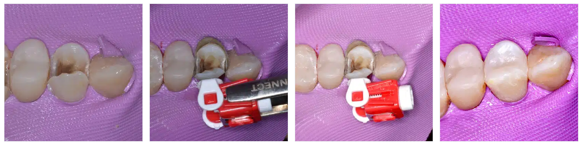 Pull-action tabs which help ensure contact during curing. They can also be temporarily bonded for efficiency when restoring adjacent surfaces