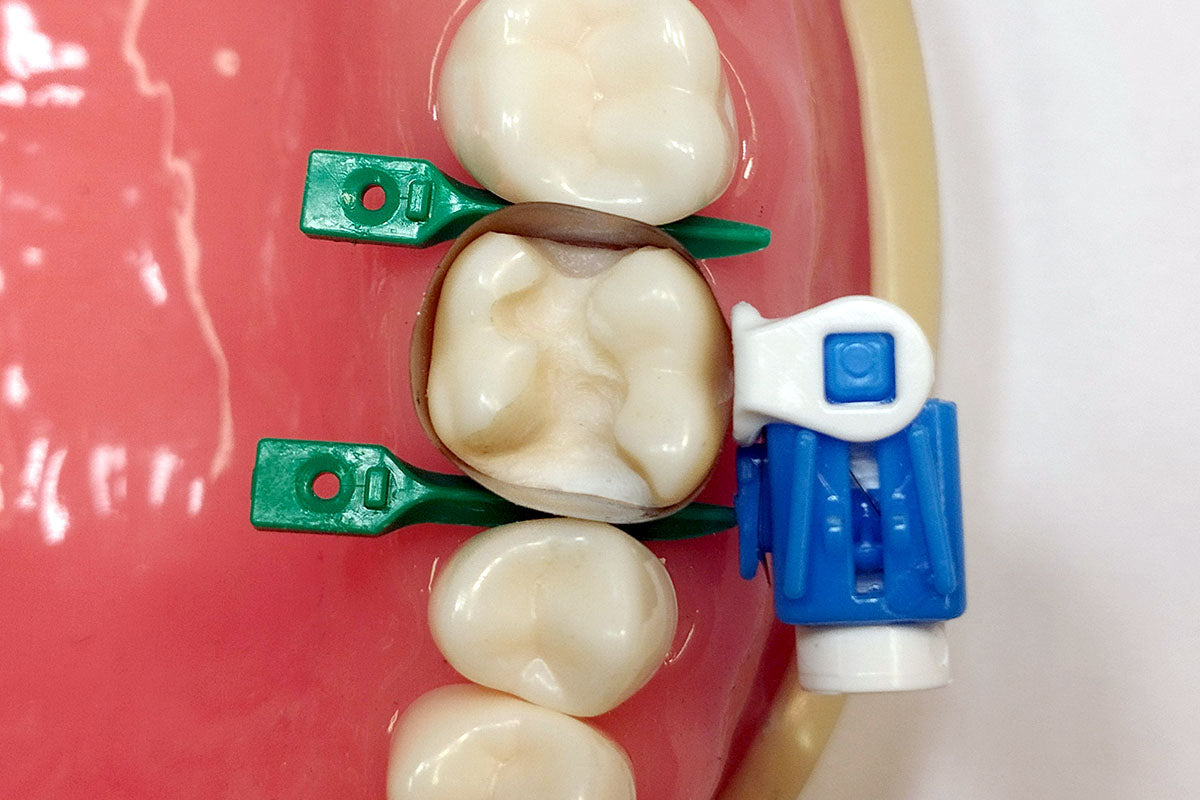 A carrier system similar in simplicity to a Tofflemire retainer but without many of its drawbacks. Detachable carrier means it doesn’t get in the way once the band is in place