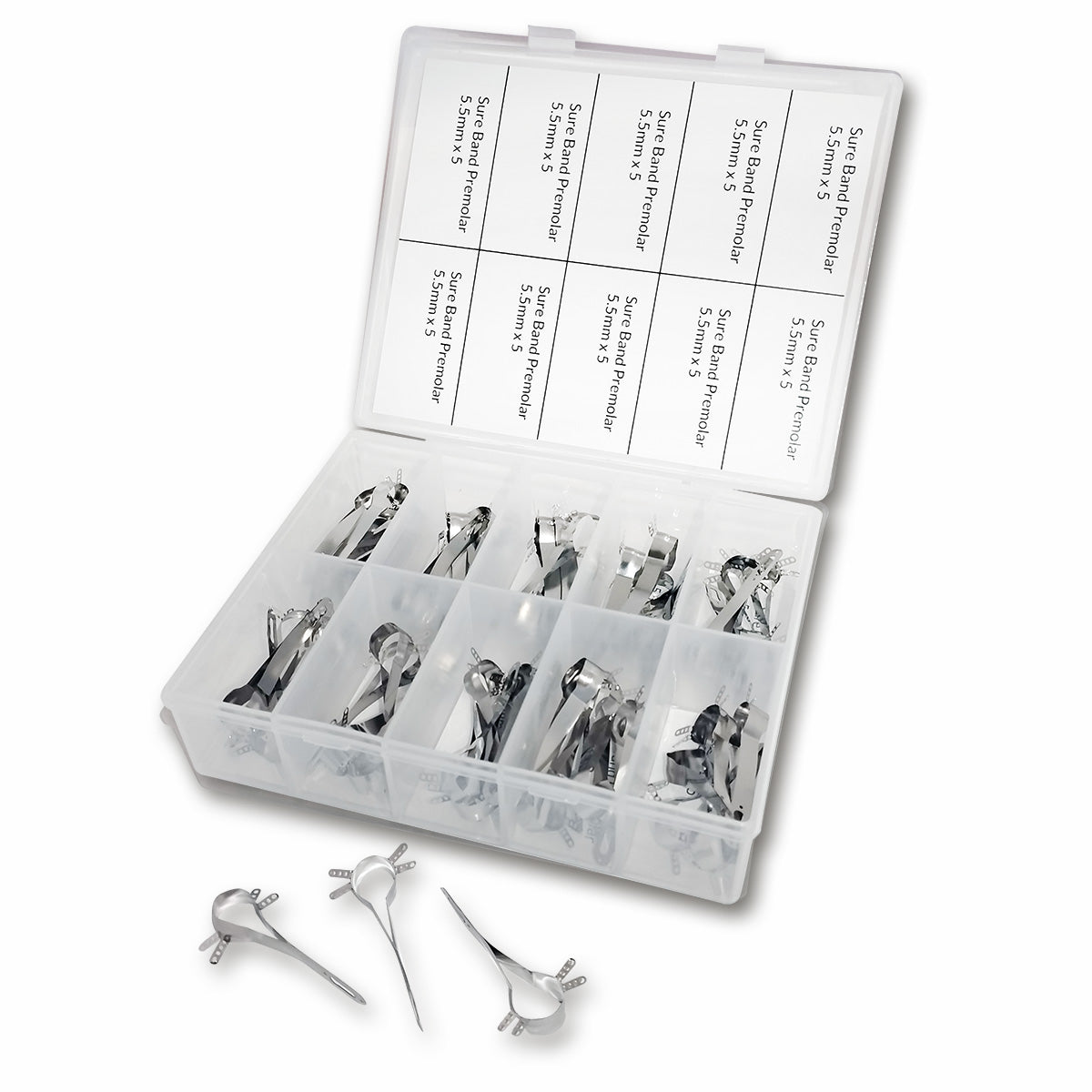 The Sure Band is contoured to natural tooth shapes, so you can achieve predictable contacts and smooth emergence profiles with ease. Its ultra-thin yet durable foil and Tofflemire compatibility make it practical for everyday use on both premolars and molars.
