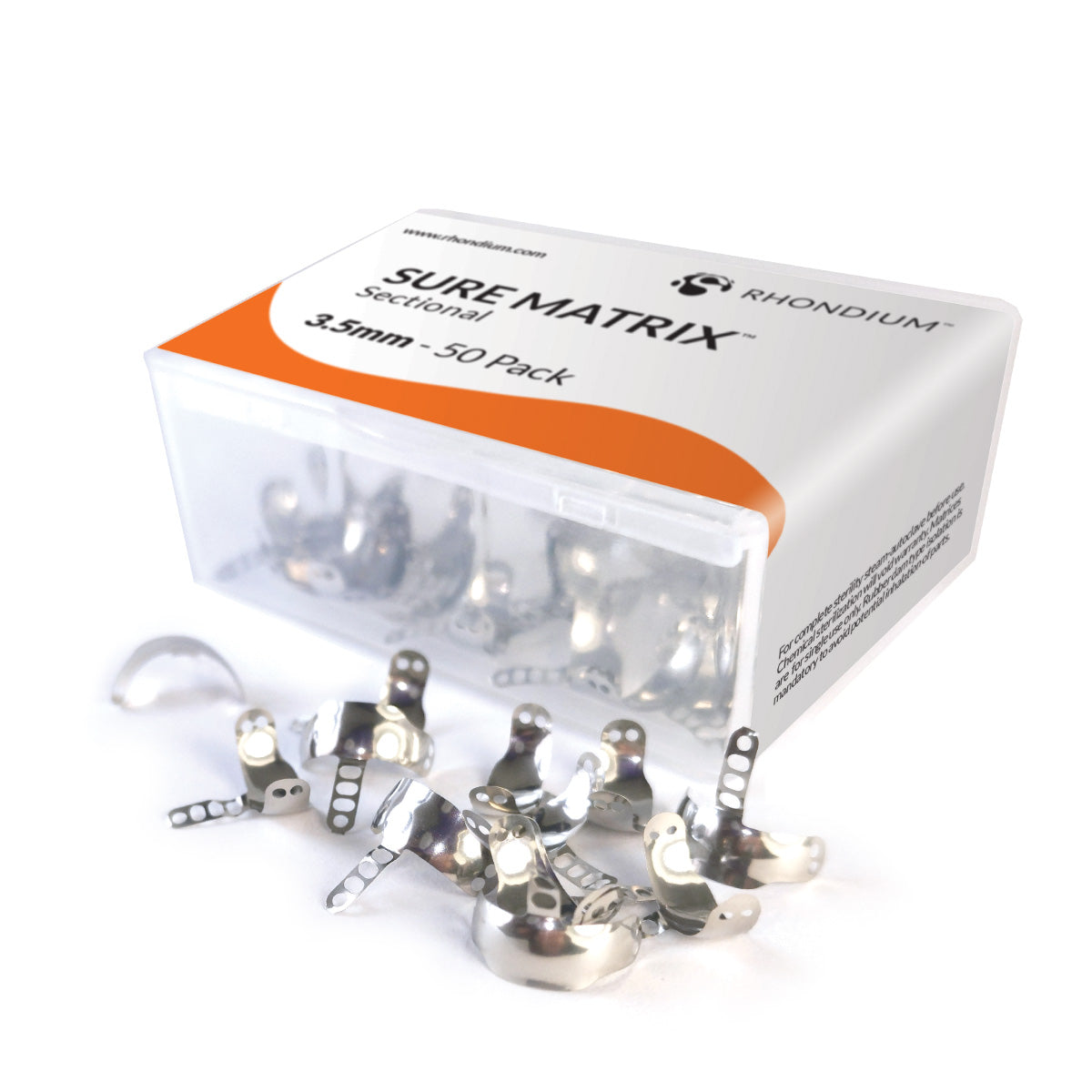 The Sure Matrix is the next evolution of sectional matrix systems. It works seamlessly with your favourite separating ring, delivering the same functions you’re used to while giving you greater control over contact placement, reliable adaptation in wide cavities or missing cusps, and a secure seal at the floor of the proximal box.